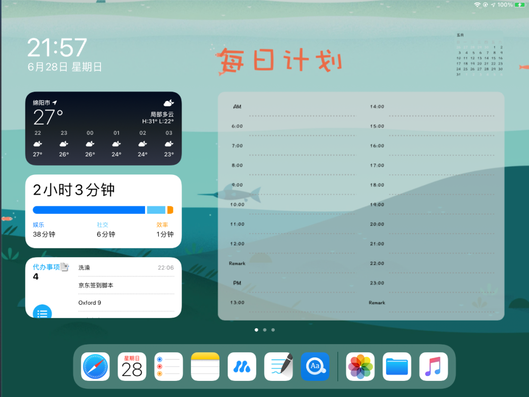 在iPad上的每日计划壁纸,风格的话感觉不适合iPadOS14了,这个的话就是基本计划做好后,如果比较重要我就会把手写笔记在goodnote上复制下来粘贴上去,然后导出图片设置壁纸。